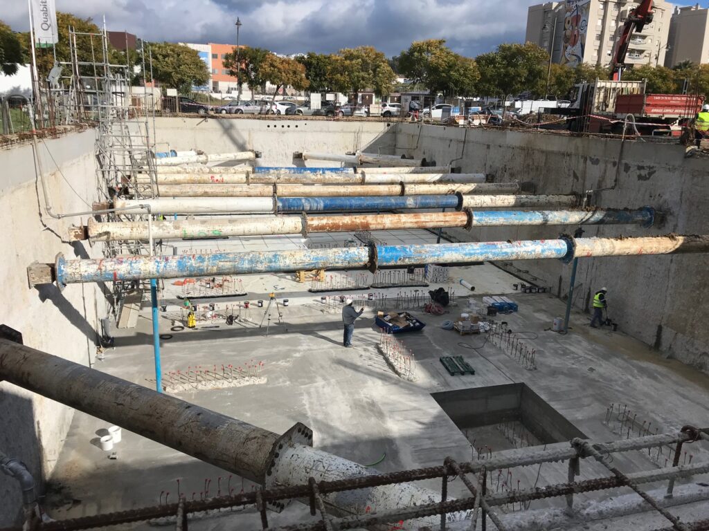 Se finaliza el fondo de excavación y se inician los trabajos de impermeabilización del edificio de 63 viviendas, garaje y trasteros denominada «Los Pedregales I» en Estepona (Málaga), que ASTREO está construyendo para la empresa QUABIT HORTALEZA S.L.U.